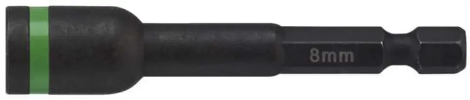 Nasadka magnetyczna z chwytem 1/4 cala i gniazdem chwytowym sześciokątnym, z wbudowanym magnesem przytrzymującym wkręt, specjalnie przystosowana do wkrętarek udarowych.