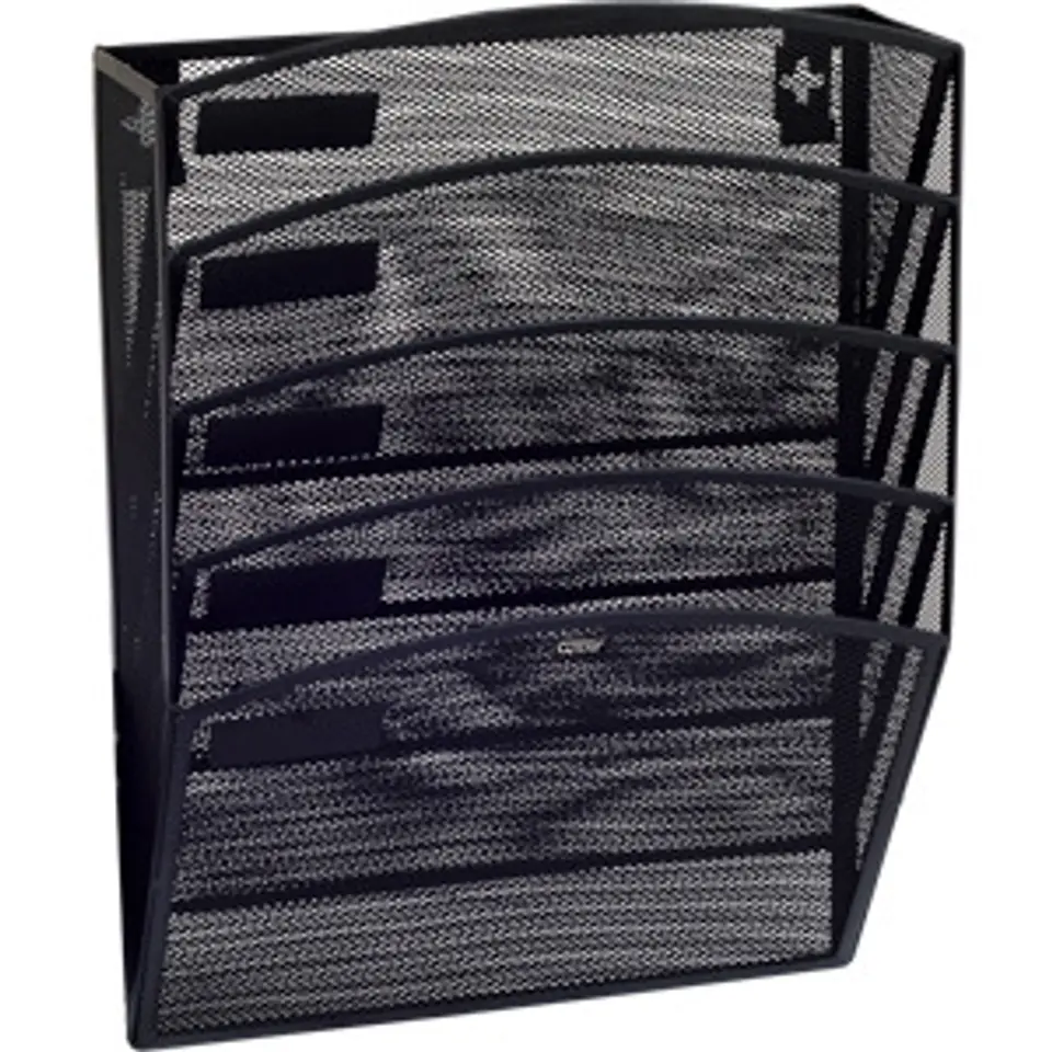 * lakierowany metal * 5 przegródek * kolory: czarny, srebrny * wymiary: 475 x 103 x 314 mm