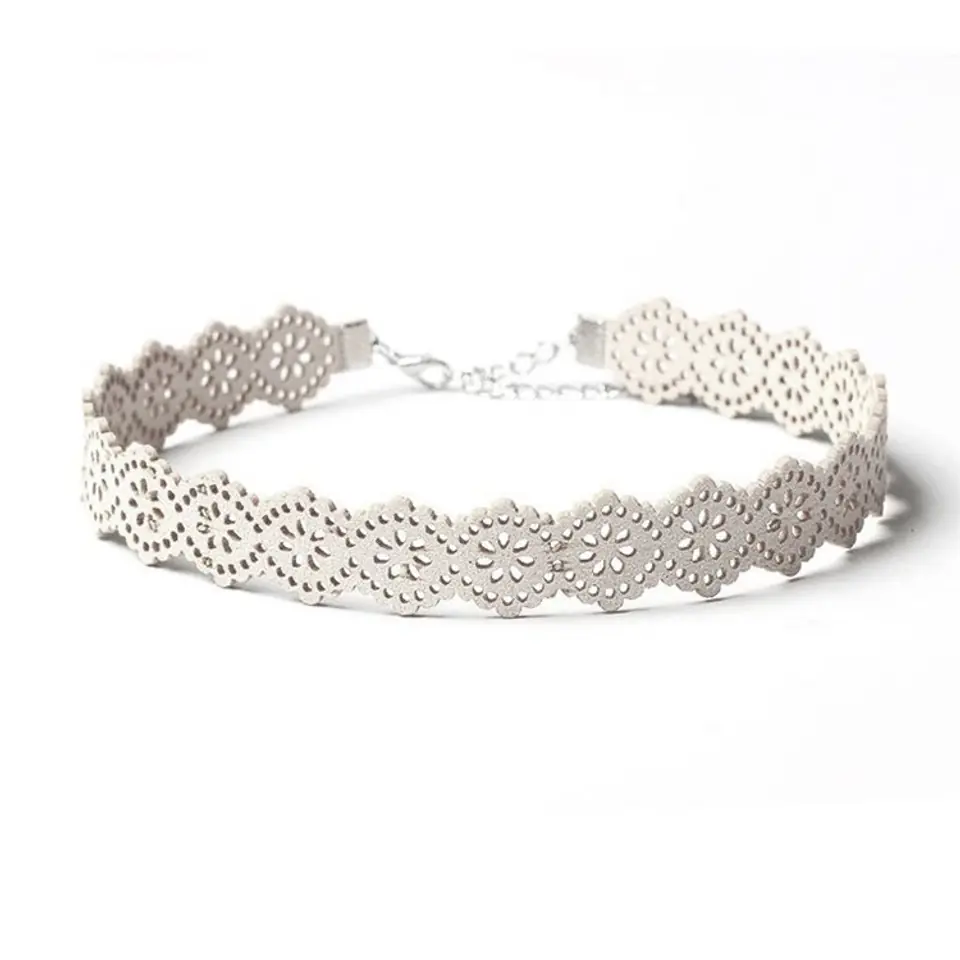 NASZYJNIK CHOKER AŻUROWY - BIEL N318B