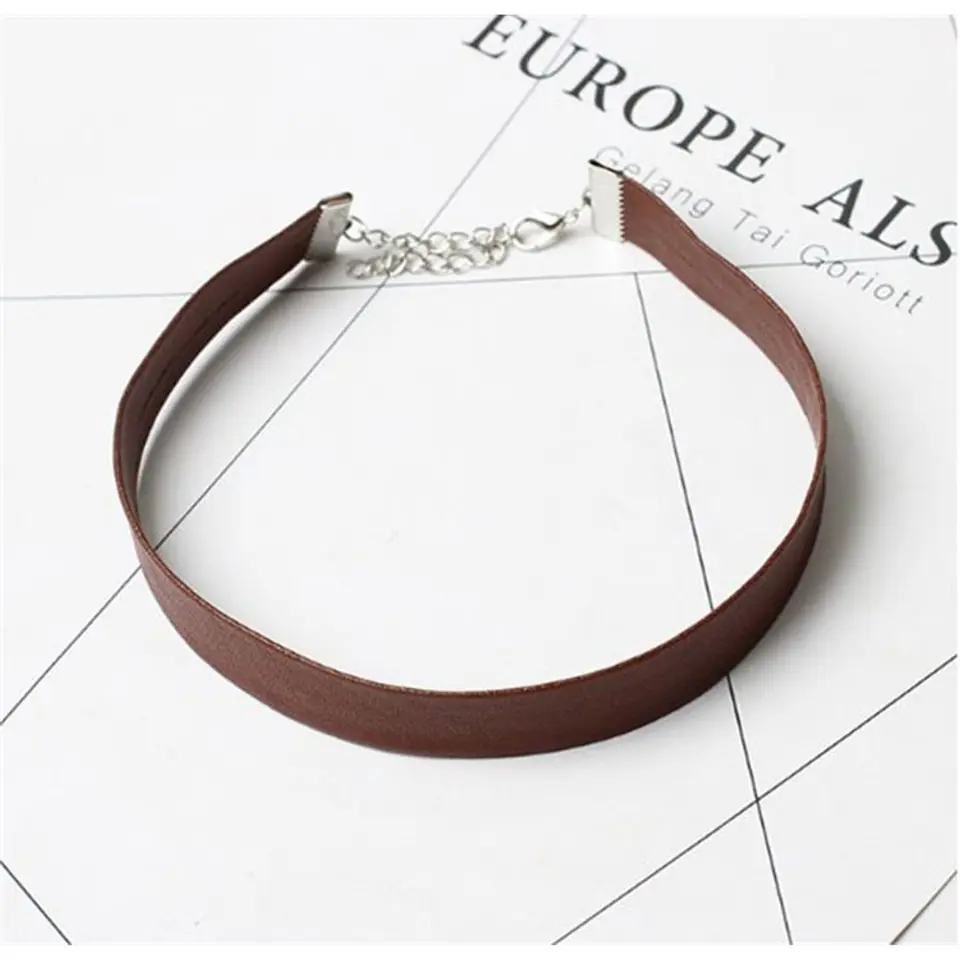 HIT SEZONU!Naszyjnik choker z zapięciem w kolorze srebra.Wykonany ze skóry ekologicznej - bardzo wygodny w noszeniu.Klasyczne i proste wzornictwo naszyjnika idealnie podkreśli naturalne piękno i klasę kobiety.Świetnie pasuje do eleganckich, jak również do codziennych stylizacji. Naszyjnik prezentuje się rewelacyjnie!Naszyjnik wykonany jest ze stopów metali nieszlachetnych.Nie zawiera niklu ani chromu.Wymiary:- długość 31 cm- 6,5 cm dodatkowej regulacji- szerokość 1,5 cm