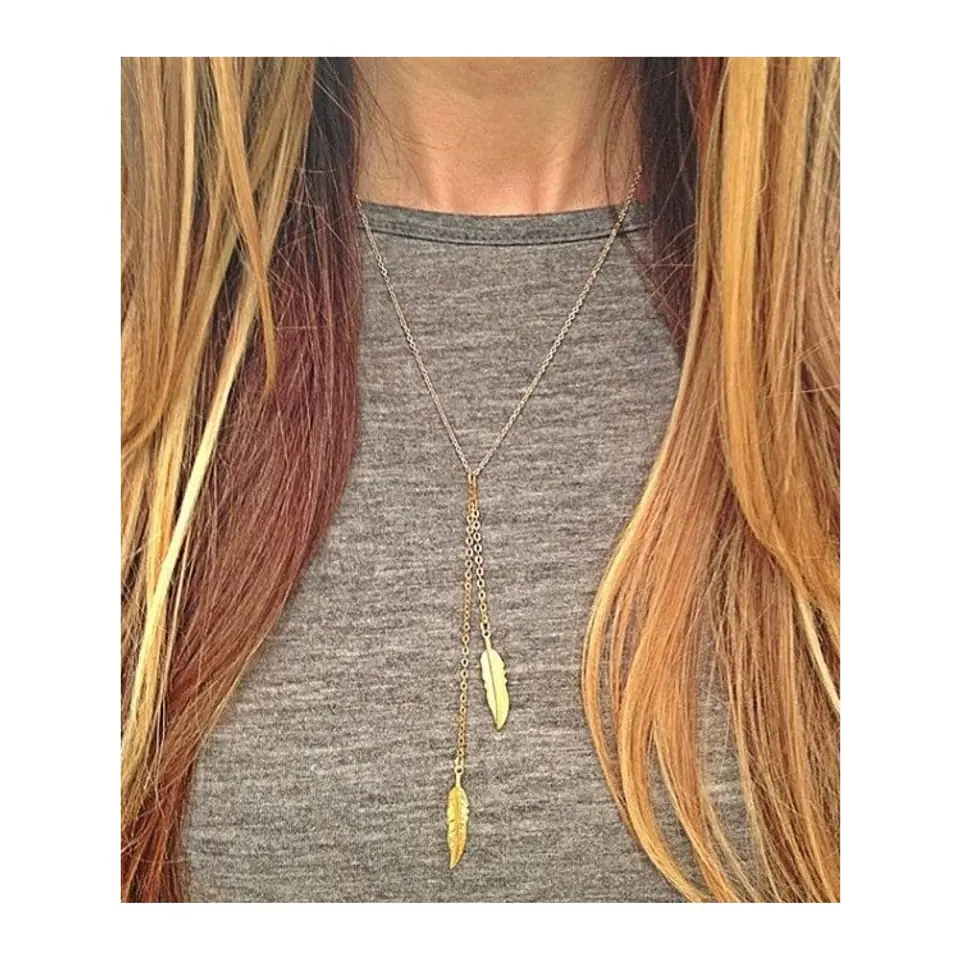 Naszyjnik długi piórka złoty N656