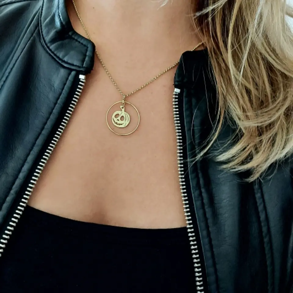 Naszyjnik to idealny pomysł na prezent a także doskonały dodatek do wielu stylizacji. Naszyjnik dynia w kole. Długość 40cm plus przedłużka 7,5cm. Naszyjnik pozłacany.