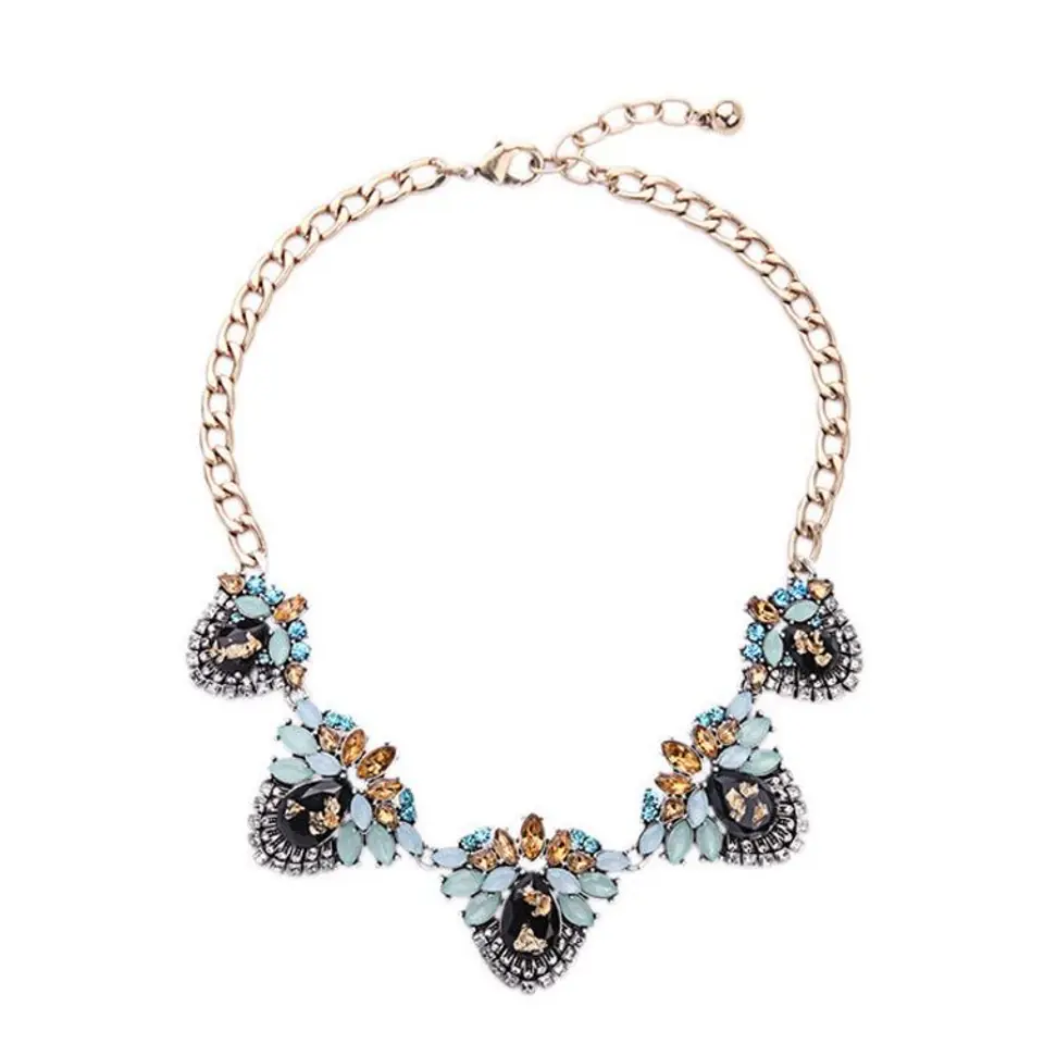 Efektowny naszyjnik wykonany z antyalergicznych materiałów z zbałością o najmniejsze detale.Ekstrawaganckie wzornictwo naszyjnika idealnie podkreśli naturalne piękno i klasę kobiety.Świetnie pasuje do eleganckich, jak również do codziennych stylizacji. Naszyjnik prezentuje się rewelacyjnie!Wykonany jest ze stopów metali nieszlachetnych.Nie są odporne na wodę.Nie zawiera niklu ani chromu.Wymiary:długość całkowita 50 cmregulacja 6 cmelement ozdobny 3,7 cm x 4 cm (największy)