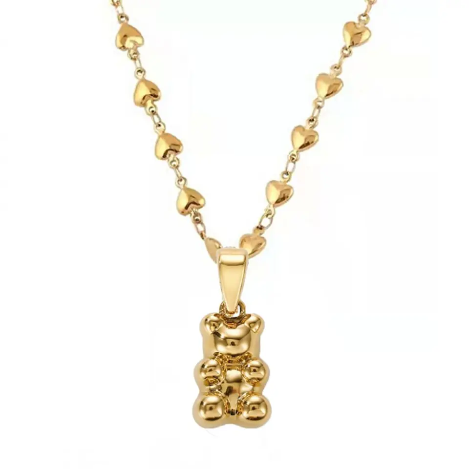 Naszyjnik Miś stal szlachetna pozłacana 14k złotem NST1592Z