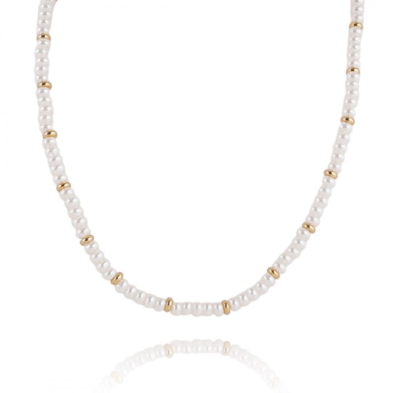 Naszyjnik perełki stal szlachetna pozłacana 14k złotem NST2107