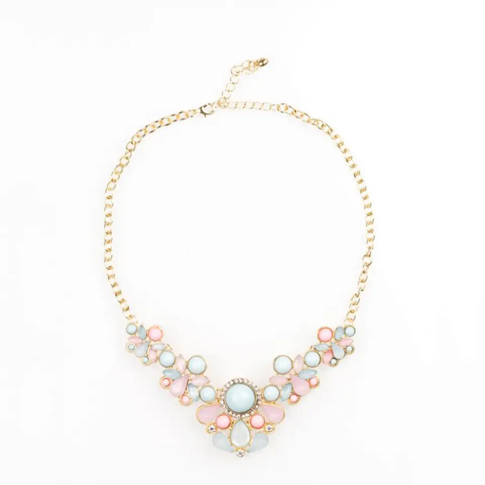 Klasyczne, piękne wzornictwo naszyjnika idealnie podkreśli naturalne piękno i klasę kobiety.Naszyjnik z kolorowymi kryształkami i elementami. Elegancki dodatek na każdą okazję, do sukienek, swetrów i bluzek.Świetnie pasuje do eleganckich, jak również do codziennych stylizacji.Wymiary:długość obwodu 51 cm (maksymalna)wysokość ozdoby 4 cmregulacja 8 cm