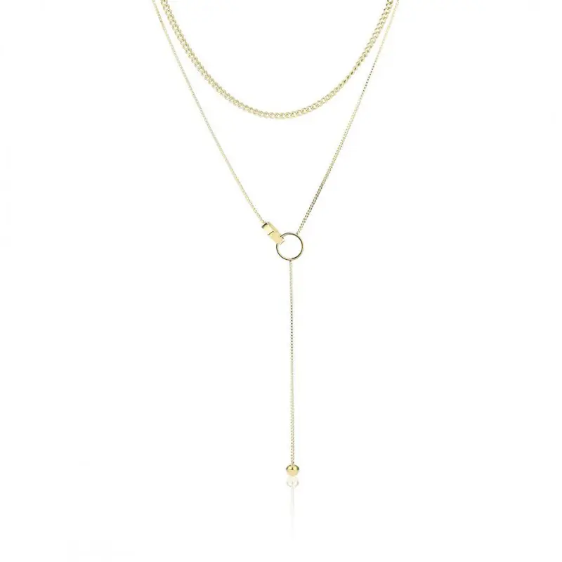 Modny naszyjnik ze stali chirurgicznej Nowa kolekcja biżuterii ze stali nierdzewnej platerowanej 14 karatowym złotemŚwietnie pasuje do eleganckich, jak również do codziennych stylizacji.Elegancki dodatek na każdą okazję, do sukienek, swetrów i bluzek.WYMIARYdługość krótszego naszyjnika: 39 cm średnica zawieszki: 1,5 cmDługość elementu zwisającego: 8 cmSTAL CHIRURGICZNA jest odporna na warunki atmosferyczne, nie ulega korozji, nie rdzewieje, nie ciemnieje!
