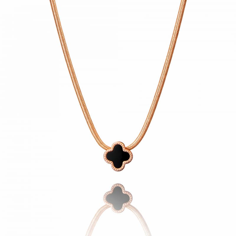 Naszyjnik stal szlachetna pozłacana 14k różowym złotem, ROSE GOLD, żyłka, koniczynka NST2232