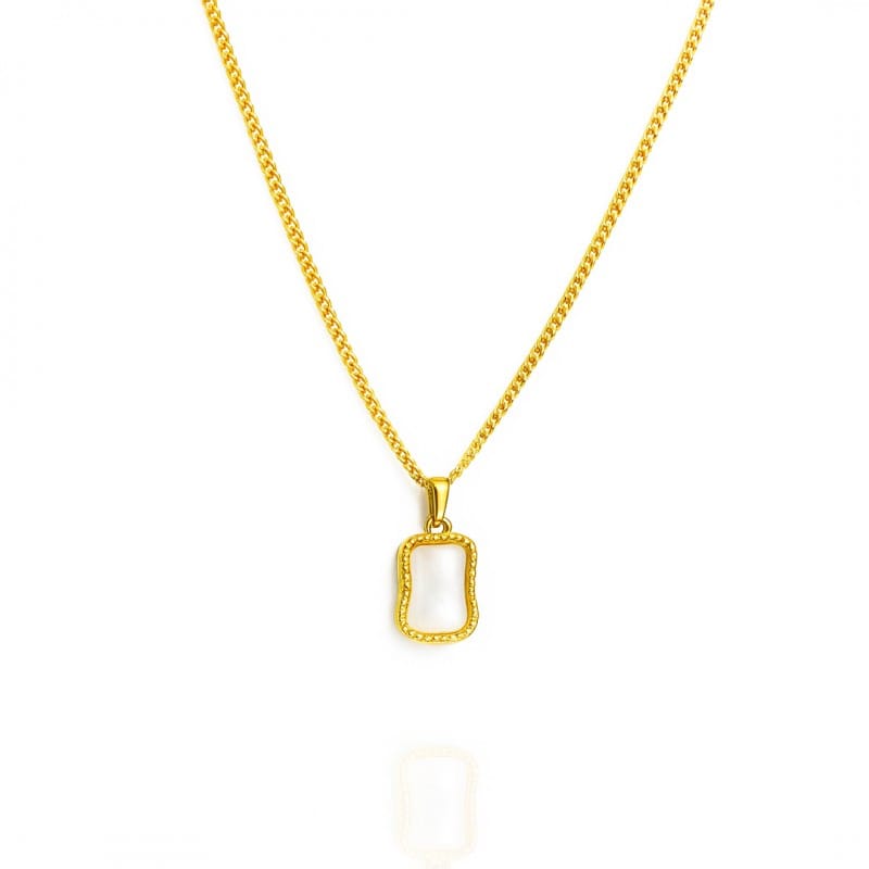 Naszyjnik stal szlachetna pozłacana 14k złotem, Biały Wisiorek Prostokąt NST2218