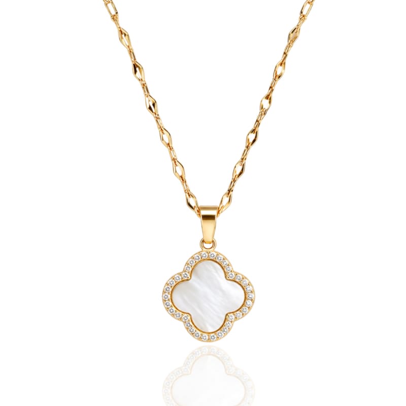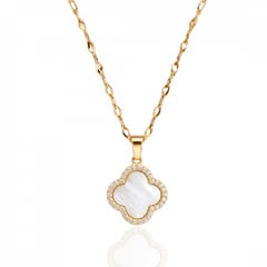 Naszyjnik stal szlachetna pozłacana 14k złotem, cyrkonie, koniczynka biel NST2292