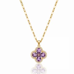 Naszyjnik stal szlachetna pozłacana 14k złotem, cyrkonie, koniczynka kwiat fiolet NST2290