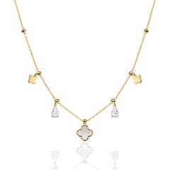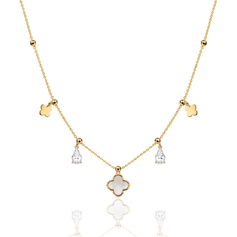 Naszyjnik stal szlachetna pozłacana 14k złotem, cyrkonie, koniczynka NST2332