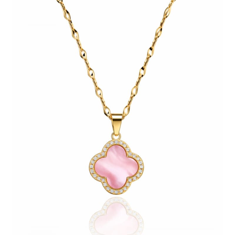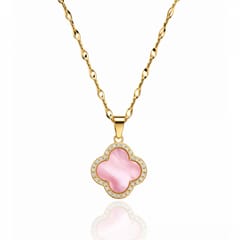 Naszyjnik stal szlachetna pozłacana 14k złotem, cyrkonie, koniczynka róż NST2293
