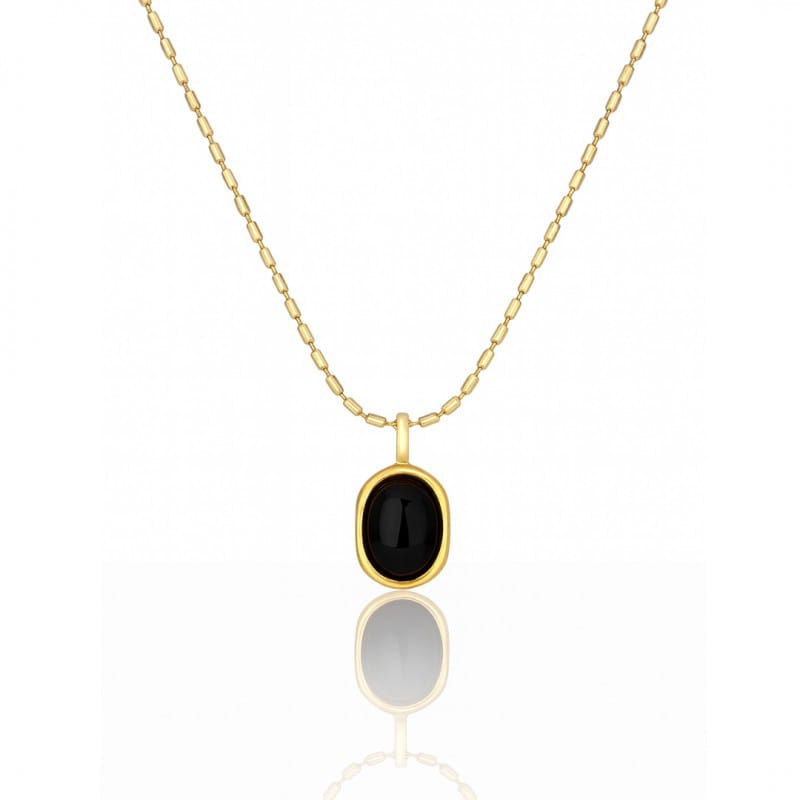 Naszyjnik stal szlachetna pozłacana 14k złotem, Czarny Wisiorek NST2219