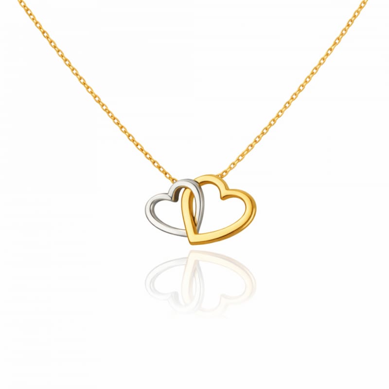 Naszyjnik stal szlachetna pozłacana 14k złotem dwa połączone SERCA, dwukolorowe NST2236