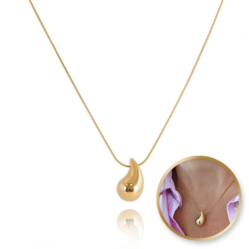 Modny naszyjnik ze stali szlachetnej platerowanej 14 - karatowym złotemŚwietnie pasuje do eleganckich, jak również do codziennych stylizacji.Elegancki dodatek na każdą okazję, do sukienek, swetrów i bluzek. Kolor:Jasny odcień złota Wymiary:Długość kropli: 2 cmDługość łańcuszka:Waga: Biżuteria ze stali chirurgicznej nie ulega korozji, nie rdzewieje, nie ciemnieje!