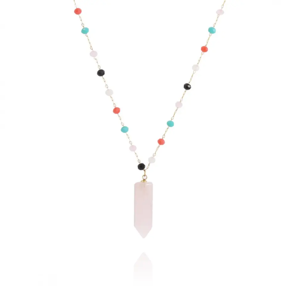 Naszyjnik stal szlachetna pozłacana 14k złotem kryształ górski NST1604