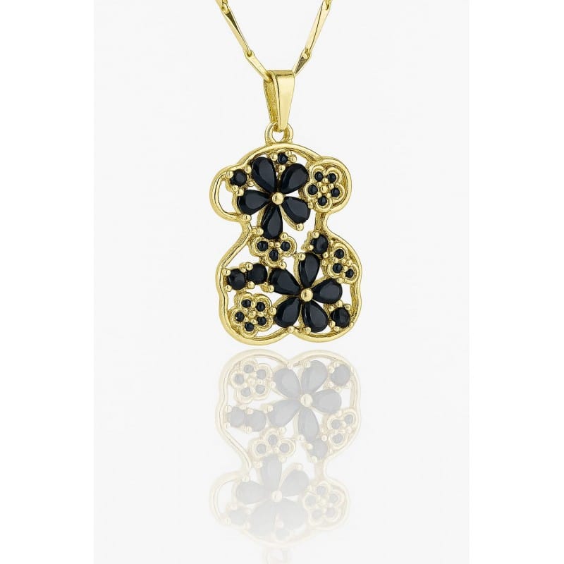 Naszyjnik stal szlachetna pozłacana 14k złotem, miś z czarną cyrkonią NST2231