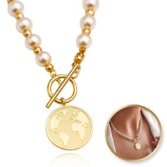 Modny naszyjnik ze stali szlachetnej platerowanej 14 - karatowym złotem Świetnie pasuje do eleganckich, jak również do codziennych stylizacji.Elegancki dodatek na każdą okazję, do sukienek, swetrów i bluzek. Kolor:Jasny odcień złota Wymiary: - Długość łańcuszka: 46 cm Biżuteria ze stali chirurgicznej nie ulega korozji, nie rdzewieje, nie ciemnieje!