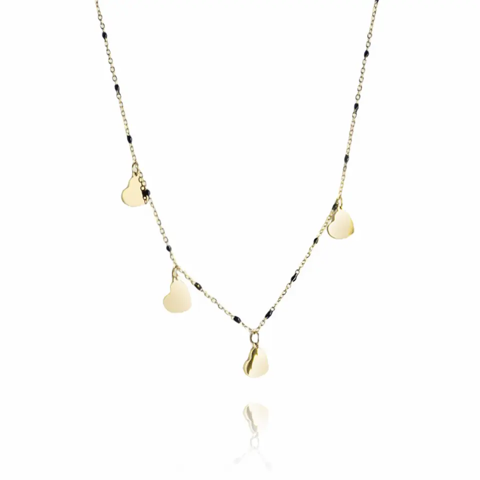 Modny naszyjnik ze stali szlachetnej platerowanej 14 - karatowym złotemŚwietnie pasuje do eleganckich, jak również do codziennych stylizacji.Elegancki dodatek na każdą okazję, do sukienek, swetrów i bluzek. Kolor: Jasne złotoWymiary: 41,5 cmRegulacja: 5,5 cmWaga: 5gProducent: inny STAL CHIRURGICZNA jest odporna na warunki atmosferyczne, nie ulega korozji, nie rdzewieje, nie śniedzieje!
