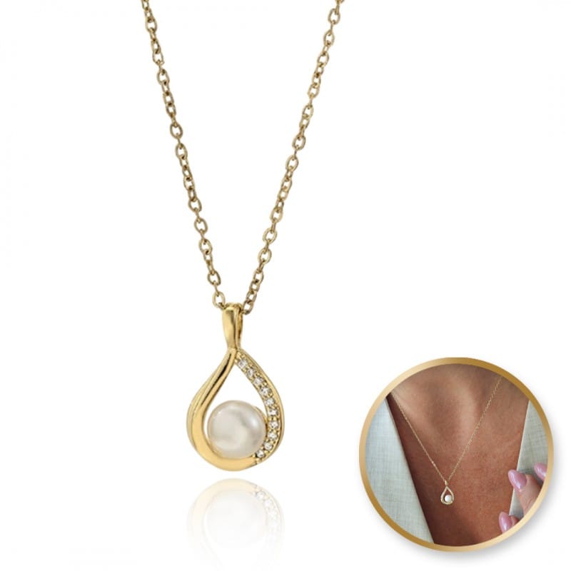 Naszyjnik stal szlachetna pozłacana 14k złotem - perła, cyrkonie NST2204
