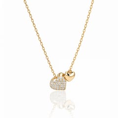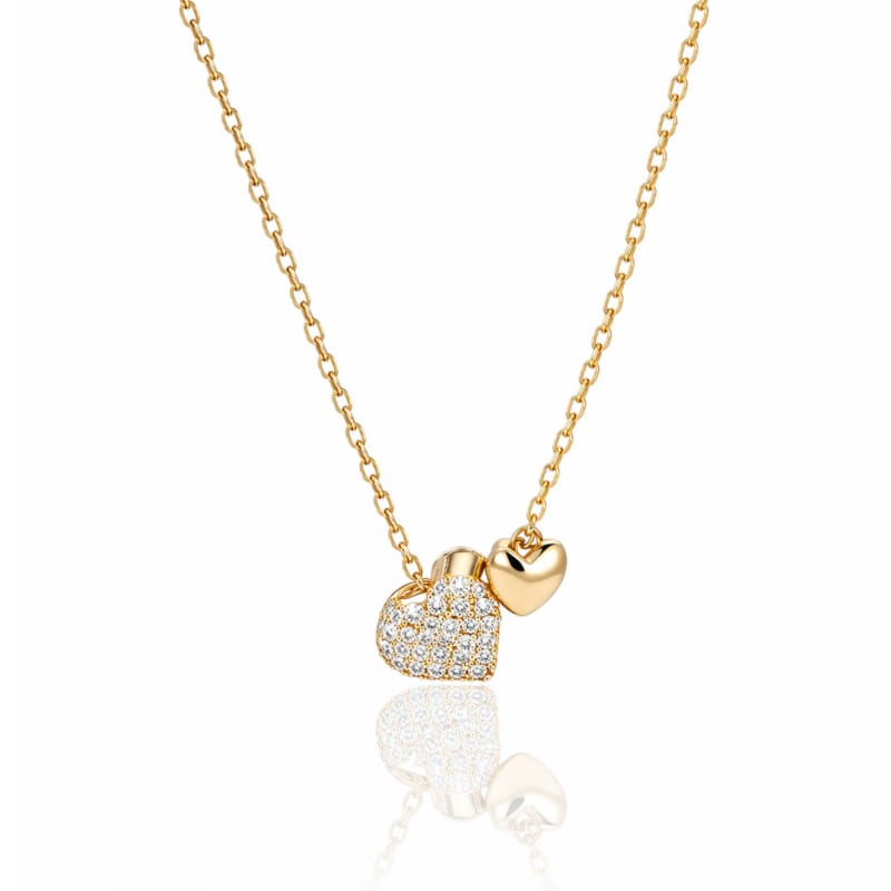 Naszyjnik stal szlachetna pozłacana 14k złotem, podwójne SERCA cyrkonie NST2272