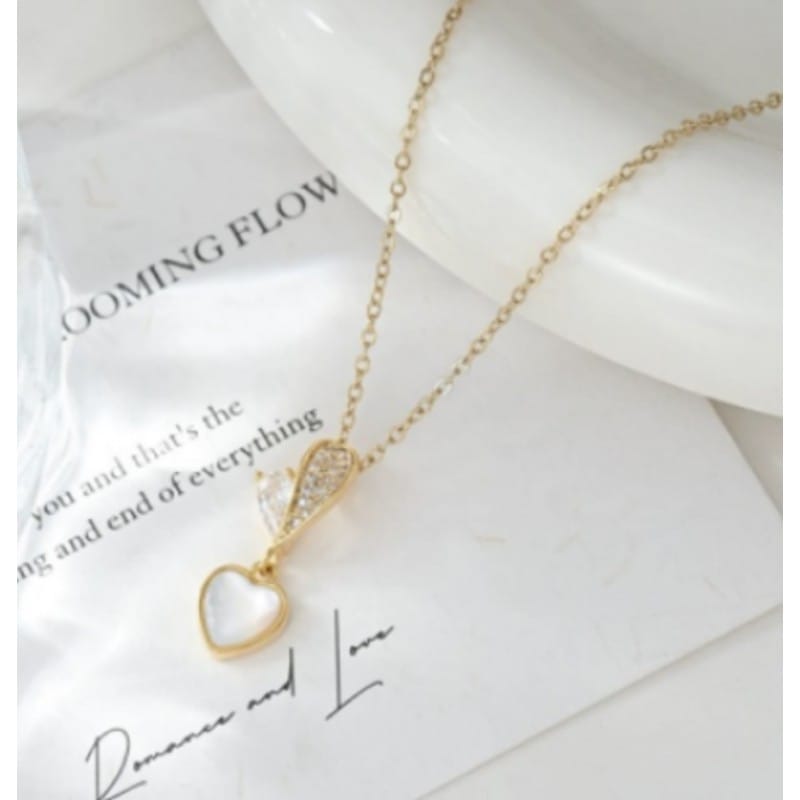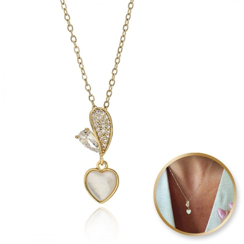 Naszyjnik stal szlachetna pozłacana 14k złotem - SERCE cyrkonie, masa perłowa NST2203