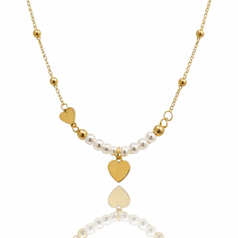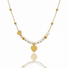 Naszyjnik stal szlachetna pozłacana 14k złotem, SERCE, perełki NST2336