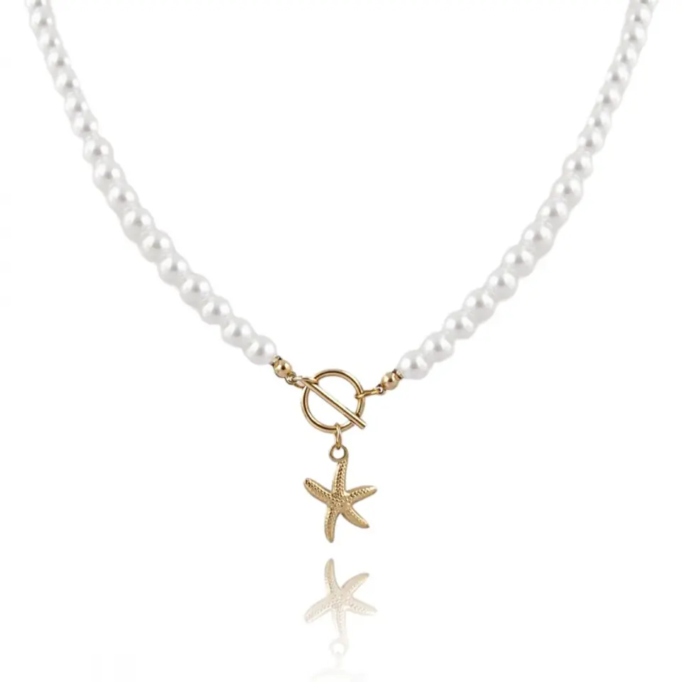 Naszyjnik z perłami, stal chirurgiczna platerowana złotem NST2091