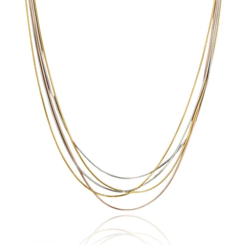 Naszyjnik ze stali szlachetnej platerowany 14-karatowym złotemElegancki i stylowy naszyjnik. WYMIARY Długość całkowita naszyjnika: 40 + 5 cm regulacji Wymiar kartonika z opakowaniem:15,5 cm x 11 cm Waga netto / brutto: 9 g / 15 g Kolor: jasne złoto, srebro STAL CHIRURGICZNA jest odporna na warunki atmosferyczne, nie ulega korozji, nie rdzewieje, nie śniedzieje.