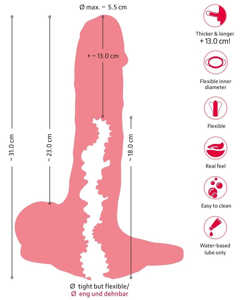 Nature Skin 3in1 Extension Masturbator Dildo 31 cm TPE uniwersalnyNajważniejsze cechy produktu:
