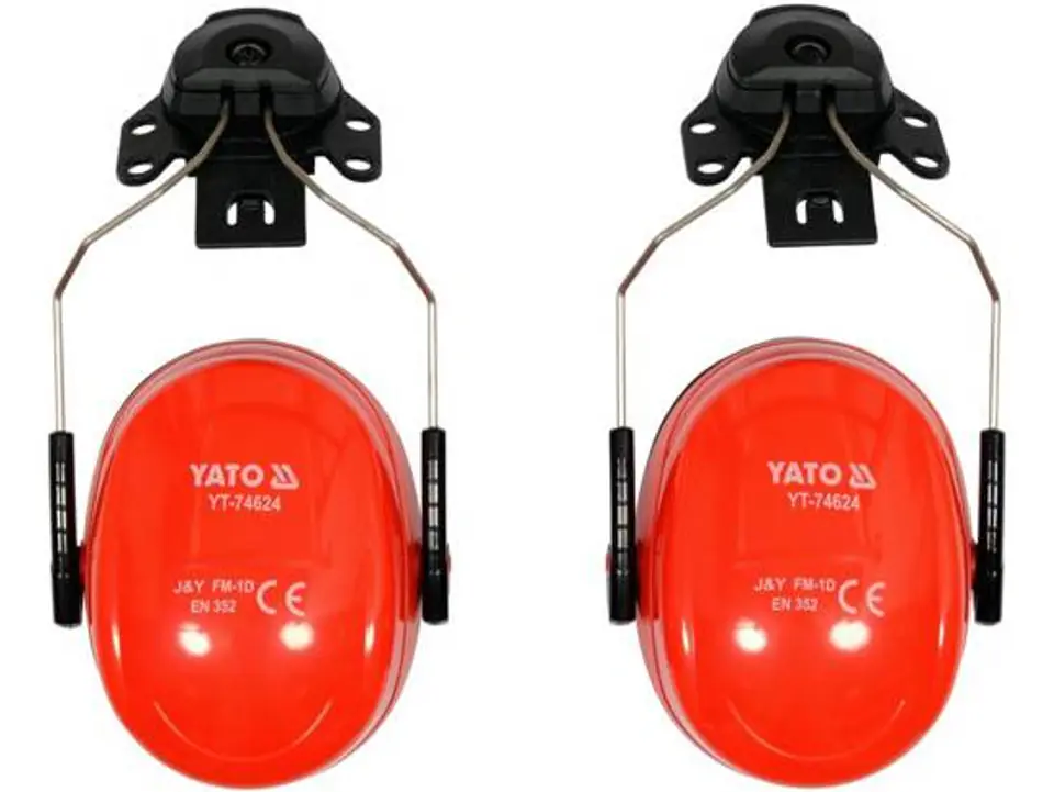Nauszniki przeciwhałasowe YT-74624 z mocowaniem na kask. Obrotowy adapter umożliwia zamocowanie do kasków ze szczeliną o szerokości minimum 25 mm. Pasuje do kasków marki YATO o numerach indeksów od YT-73970 do YT-73975 (szczelina 29 mm) oraz VOREL o numerach indeksów od 74190 do 74195 (szczelina 31 mm)