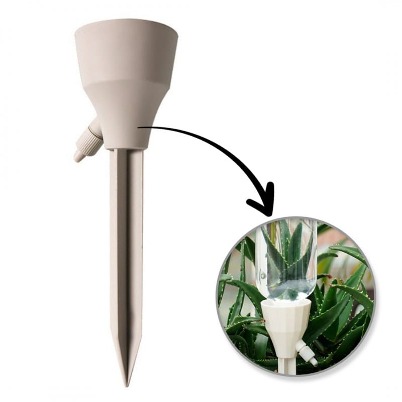 Nawadniacz automatyczny z kranikiem do kwiatów, roślin, doniczek Nawadniacz do roślin doniczkowych, wciskany do standardowego gwintu butelki.Doskonale zapewnia roślinom wodę podczas dłuższej nieobecności. Specyfikacja:- Posiada kranik oraz uszczelkę do regulowania szybkości upływu wody.-Zapewnienia wodę przez dłuższy czas (nawet do 2 tygodni)Kolor: BeżowyMateriał: Tworzywo sztuczne/ Plastik Wymiary: 17,5 x 5 cmWaga:23gIdealny do domów, ogrodów oraz działek