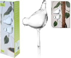 Zestaw 2 sztuk nawadniaczy do kwiatów w kształcie przypominający ptaka wykonane są ze szkła. Doskonale nadają się do dłuższego nawadniania roślin przez dłuższy czas nawet do 2 tygodni. Produkt został stworzony z myślą głównie o roślinach doniczkowych przechowywanych w domu czy na balkonie, aby dostarczyć im wodę podczas nieobecności domowników. Produkt ten jest bardzo łatwy w użyciu. Wystarczy zrobić wgłębienie w ziemi w miejscu gdzie będzie nawadniacz, następnie całkowicie wypełniony wodą umieścić pionowo w ziemi. Pojemność kuli: 200 ml