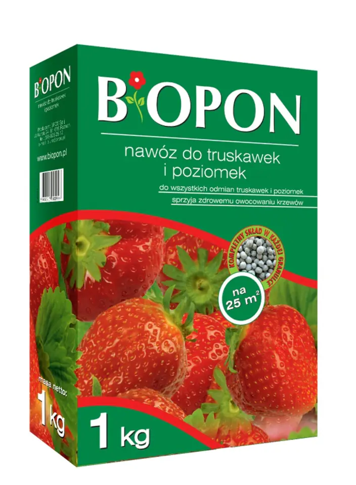 Wieloskładnikowy nawóz granulowany przeznaczony do nawożenia truskawek i poziomek w uprawach gruntowych.