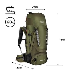 - Model: NC1994 RAMSVIK Pojemność: 60 l Materiał: nylon, poliester Wymiary (orientacyjne): wysokość 76 cm, szerokość 29 cm, głębokość 26 cm System nośny: Control TORSO - regulacja wysokości pleców System wentylacji: Air Control z panelem i siatką dystansującą Dostęp do komory głównej: od góry oraz przez system U-zip Kieszeń na system hydracyjny Kieszenie: boczne, w klapie (wewnętrzna i zewnętrzna), dolna z możliwością oddzielenia Pętle montażowe i paski kompresyjne Mocowanie kijów trekkingowych Pas biodrowy z dwiema kieszeniami na zamek Regulowany pas piersiowy Pokrowiec przeciwdeszczowy w zestawie Waga: 1,5 kg