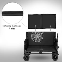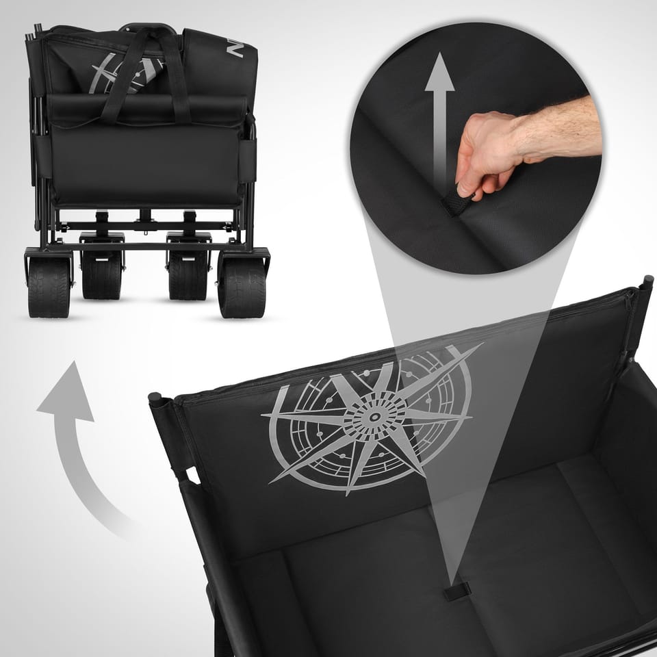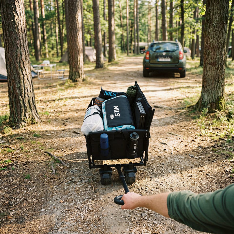 NC2606 WÓZEK PLAŻOWY 140L NILS CAMP to pojemny i wyjątkowo funkcjonalny wózek plażowy, który sprawdzi się nie tylko jako środek transportu ekwipunku, ale również jako praktyczna ławka do siedzenia. To model stworzony z myślą o plaży, campingu, piknikach, ogrodzie, działce i wszędzie tam, gdzie liczy się wygodny przewóz bagażu oraz możliwość odpoczynku w dowolnym miejscu. FUNKCJA SIEDZENIA I WYGODA ODPOCZYNKU Największym atutem wózka jest jego funkcja siedzenia. Konstrukcja pozwala szybko zmienić go z klasycznego wózka transportowego w wygodną ławkę. Jedna ze ścianek po rozłożeniu staje się oparciem, a dołączone do zestawu usztywnienia o grubości 4 cm wzmacniają tę część i poprawiają komfort użytkowania. Dzięki temu wózek zyskuje drugie zastosowanie i może pełnić rolę praktycznego miejsca do odpoczynku podczas pobytu na plaży lub w terenie. Dodatkowo oparcie wyróżnia się dekoracyjnym motywem róży wiatrów, który nadaje całości charakterystyczny outdoorowy styl. DUŻA POJEMNOŚĆ I SOLIDNA KONSTRUKCJA Model oferuje pojemność 140 litrów oraz maksymalne obciążenie do 120 kg, dzięki czemu bez problemu pomieści ręczniki, torby, zabawki, akcesoria plażowe, sprzęt campingowy, koce czy prowiant. Mocny stalowy stelaż odpowiada za trwałość i stabilność, a tkanina 600D Oxford dobrze sprawdza się w użytkowaniu zewnętrznym. Konstrukcję uzupełniają zamki błyskawiczne oraz mocne rzepy, które wspierają wygodę użytkowania i organizację przewożonych rzeczy. WYGODNE PROWADZENIE I ŁATWE MANEWROWANIE Wózek został wyposażony w cztery koła terenowe, w tym dwa ruchome koła obracające się o 360 stopni, co znacząco poprawia manewrowanie. Z przodu zastosowano dwa hamulce do blokowania kół, które pomagają utrzymać wózek w miejscu podczas postoju lub podczas korzystania z funkcji ławki. Regulowana rączka o wysokości 73–103 cm pozwala dopasować ustawienie do wzrostu użytkownika i zwiększa wygodę prowadzenia nawet przy większym obciążeniu. PRAKTYCZNY TRANSPORT I PRZECHOWYWANIE NC2606 jest także bardzo praktyczny w transporcie i przechowywaniu. Składa się w około 5 sekund, a po złożeniu może być wygodnie przewożony i przenoszony dzięki uchwytom do noszenia w ręce. To rozwiązanie szczególnie przydatne przy pakowaniu do samochodu, przechowywaniu poza sezonem lub przenoszeniu wózka na krótszych dystansach. PRAKTYCZNE DETALE UŻYTKOWE Na uwagę zasługują również praktyczne detale użytkowe. Model posiada dwie kieszenie na butelki, które ułatwiają przewożenie napojów lub termosów, a dobrze zaprojektowana konstrukcja pomaga uporządkować przewożony ekwipunek i utrzymać potrzebne rzeczy zawsze pod ręką. To model łączący dużą pojemność, wygodę prowadzenia, szybkie składanie i funkcję komfortowej ławki w jednym produkcie. Specyfikacja: Pojemność: 140 l Maksymalne obciążenie: 120 kg Stelaż: stalowyWielkość kół: 7*4"Typ kół: PP + PVC Materiał: 600D Oxford Waga netto: 9,3 kg Wymiary: Długość wózka: 97 cm Szerokość wózka: 58,5 cm Wysokość rączki: 73–103 cm Wysokość burty: 27 cm Wysokość burty od ziemi: 51 cm Wysokość oparcia: 49 cm Wysokość oparcia od ziemi: 73 cm Grubość usztywnienia: 4 cm Złożony: 60 x 20 (stelaż) x 73 cm Uwagi: Nieprzeznaczony do użytku komercyjnego Gwarancja: 24 miesiące Importer: Abisal Sp. z o.o.| Polska | 41-807 Zabrze | ul. Pyskowicka 17 | e-mail: abisal@abisal.plAbisal Sp. z o.o. deklaruje, iż produkty sprzedawane przez firmę są bezpieczne i spełniają wymagania zawarte w Ustawie o ogólnym bezpieczeństwie produktów z dnia 12 grudnia 2003r. (Dz.U. z dnia 31 grudnia 2003r.)
