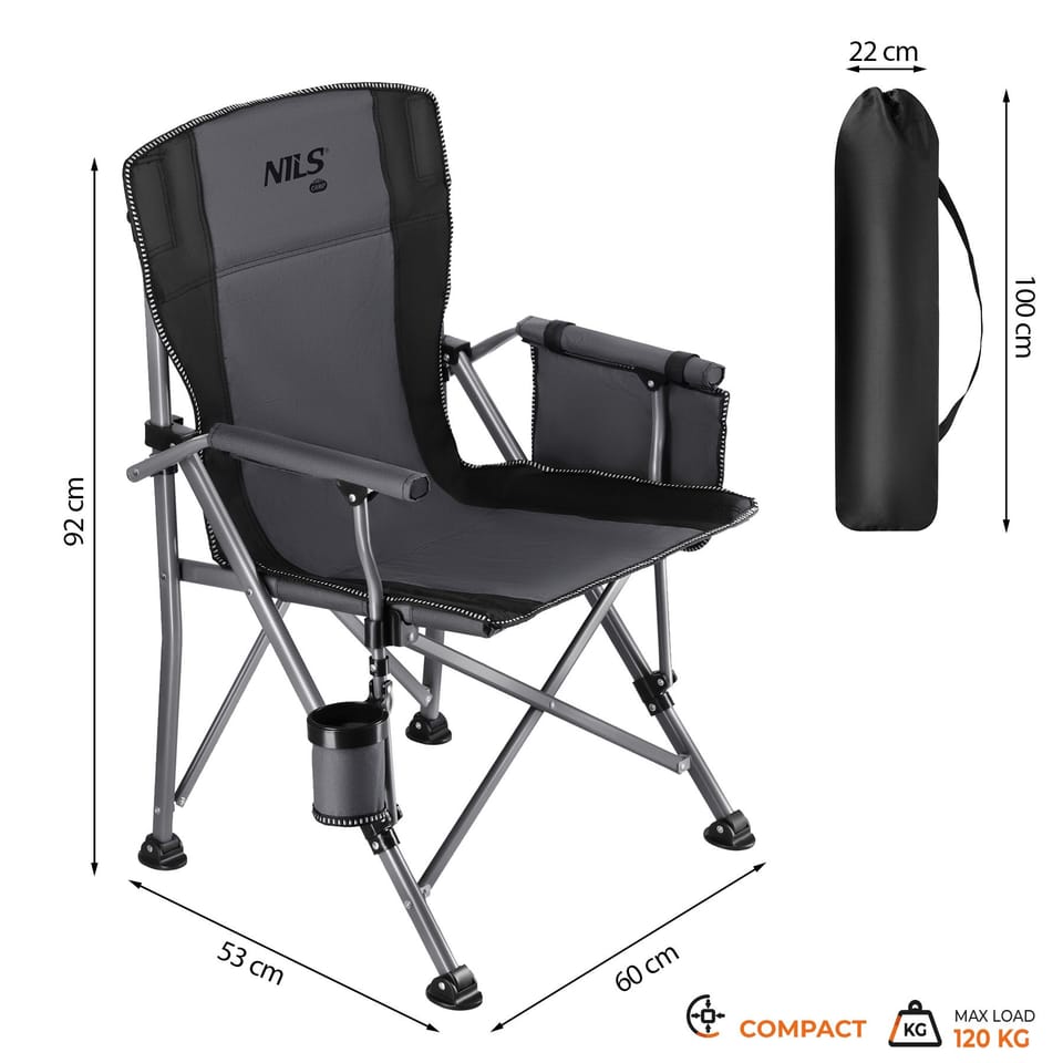 NC3309 KRZESŁO WĘDKARSKIE SKŁADANE SZARO-CZARNE NILS CAMP