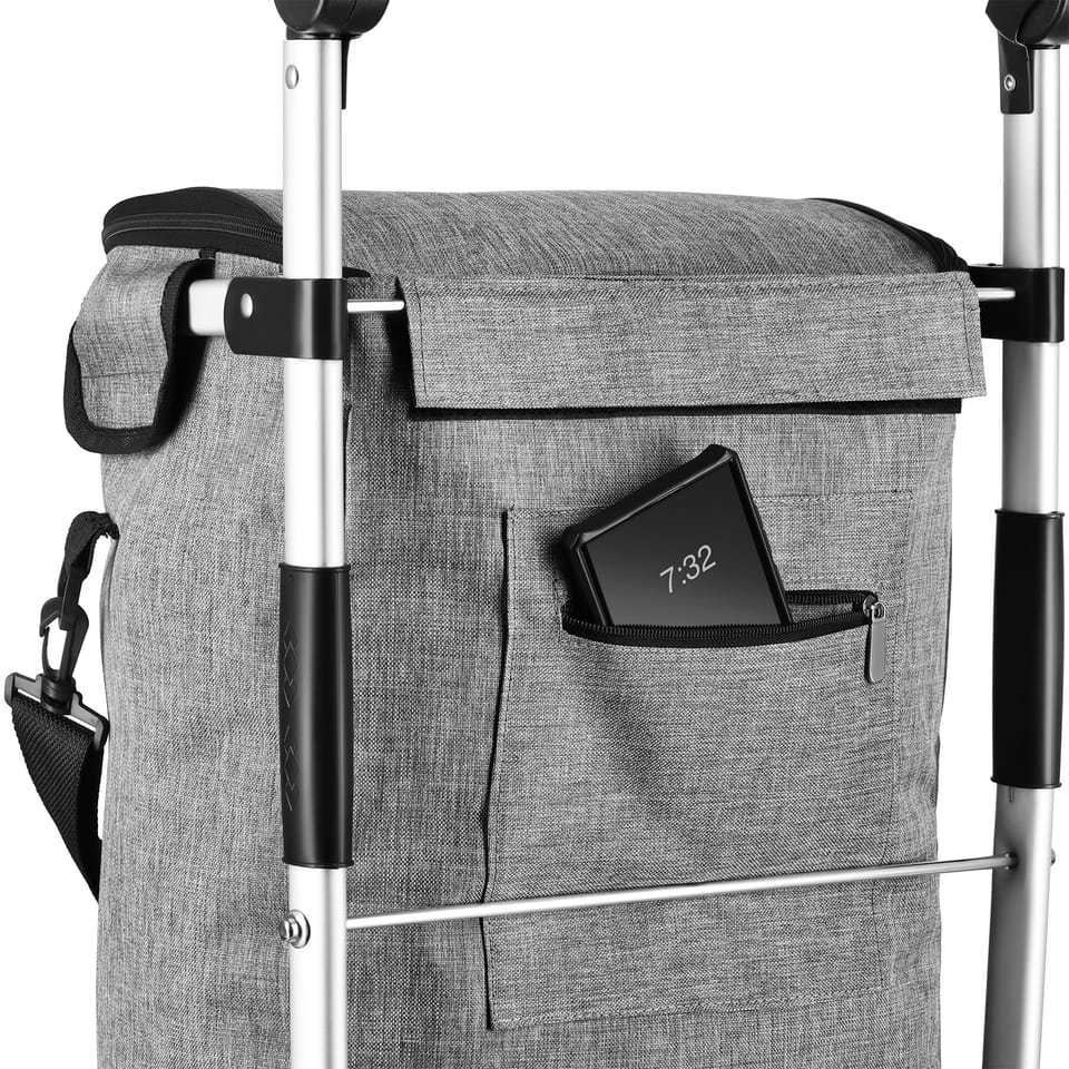 Wózek na zakupy NC4305 to składany model PREMIUM, który ułatwia codzienne zakupy i transport rzeczy w mieście, a przy okazji świetnie sprawdza się także poza domem – na plaży, pikniku czy podczas wyjazdów. Został zaprojektowany tak, aby łączyć dużą pojemność, wygodę prowadzenia i praktyczne detale, które docenisz w różnych sytuacjach. Dzięki pojemności 50 L oraz maksymalnemu obciążeniu do 40 kg, NC4305 pozwala przewieźć większe zakupy lub cięższe pakunki bez noszenia toreb. Lekki aluminiowy stelaż zapewnia stabilność, a torba z trwałego poliestru 900D z właściwościami termoizolacyjnymi pomaga utrzymać temperaturę przewożonych produktów. Komora główna jest zapinana na zamek, a zewnętrzna mała kieszonka na zamek ułatwia przechowywanie drobiazgów, które chcesz mieć pod ręką.Dodatkowym atutem są elementy odblaskowe, które poprawiają widoczność wózka po zmroku i w gorszych warunkach pogodowych. To praktyczny detal, który zwiększa bezpieczeństwo podczas powrotu z zakupów wieczorem, poruszania się przy drodze czy na słabiej oświetlonych chodnikach.Duże koła o średnicy 21 cm i grubości 4,3 cm zapewniają płynne prowadzenie po różnych nawierzchniach, a aluminiowy uchwyt regulowany w 3 pozycjach (z wykończeniem z pianki) pozwala dopasować wysokość do użytkownika. Wózek rozkłada się szybko i łatwo, a po złożeniu pozostaje kompaktowy, dzięki czemu wygodnie go przechowasz lub przewieziesz. Torba jest mocowana do stelaża na rzepy, a dodatkowy uchwyt umożliwia noszenie jej jak klasycznej torby, gdy tego potrzebujesz. Możesz ją zabrać na plaże, piknik czy działkę! Specyfikacja: Materiał stelaża: aluminiumMateriał torby: poliester 900D (właściwości termoizolacyjne)Pojemność torby: 50 lMaksymalne obciążenie: 40 kgWymiary po rozłożeniu: 101 × 49 × 30 cmWymiary torby: 55 × 36 × 23 cmKoła: średnica 21 cm, grubość 4,3 cmUchwyt: aluminiowy, regulowany w 3 pozycjachWykończenie uchwytu: piankaKomora główna: zapinana na zamekKieszeń dodatkowa: zewnętrzna, mała, na zamekMocowanie torby: rzepyDodatkowy uchwyt torby: tak (możliwość noszenia jak torbę)Funkcja składania: takWaga produktu: 2,8 kg Uwagi: Nie przeznaczona do użytku komercyjnegoGwarancja: 24 miesiące Importer: Abisal Sp. z o.o.| Polska | 41-807 Zabrze | ul. Pyskowicka 17 | e-mail: abisal@abisal.plAbisal Sp. z o.o. deklaruje, iż produkty sprzedawane przez firmę są bezpieczne i spełniają wymagania zawarte w Ustawie o ogólnym bezpieczeństwie produktów z dnia 12 grudnia 2003r. (Dz.U. z dnia 31 grudnia 2003r.)