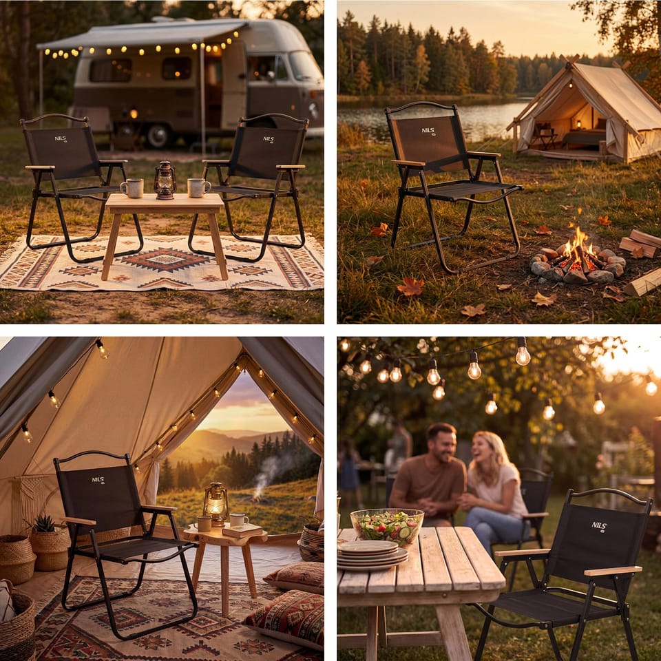 NC4307 KRZESŁO SKŁADANE CZARNE NILS CAMP to praktyczne krzesło, które sprawdzi się zarówno na balkonie i tarasie, jak i podczas wyjazdów w plener, glampingu czy spotkań przy grillu na działce. Łączy wygodę użytkowania z dopracowanym wyglądem oraz łatwością transportu i przechowywania. Czarna wersja wyróżnia się elegancką, uniwersalną kolorystyką, pasującą do nowoczesnych aranżacji i naturalnych przestrzeni outdoorowych.Drewniane elementy wykończenia dodają całości stylu i sprawiają, że krzesło prezentuje się estetycznie zarówno w ogrodzie, jak i w strefach glampingowych. Konstrukcję oparto na solidnym stelażu z żelaza, a jego powierzchnia została zabezpieczona poprzez malowanie proszkowe. Taka powłoka zwiększa odporność na codzienne użytkowanie i pomaga zachować estetyczny wygląd przez dłuższy czas, co podkreśla wysoką jakość wykonania. Siedzisko wykonano z wytrzymałego materiału 900D. Materiał o grubszym splocie jest znany z bardzo dobrej odporności na ścieranie oraz rozdarcia, dzięki czemu krzesło dobrze sprawdza się w warunkach plenerowych i przy częstym składaniu oraz rozstawianiu.Składana konstrukcja pozwala szybko przygotować wygodne miejsce do siedzenia, a po zakończeniu odpoczynku równie łatwo złożyć krzesło do kompaktowych rozmiarów. Dzięki temu NC4307 bez problemu zmieści się w schowku, szafie lub bagażniku, gdy chcesz zabrać je na wyjazd. NC4307 w kolorze czarnym to świetny wybór dla osób, które szukają stabilnego, wygodnego i stylowego krzesła „na różne okazje” — od porannej kawy na balkonie, przez grill na działce, po weekendowy wypad poza miasto. Specyfikacja: Materiał siedziska: 900D poliesterStelaż: żelazoWykończenie stelaża: malowanie proszkoweWymiary po rozłożeniu: 78 × 52 × 52,5 cmWymiary po złożeniu: 70× 52 × 8 cmMaksymalne obciążenie: 100 kgWaga produktu: 2,5 kg Uwagi: Nie przeznaczona do użytku komercyjnegoGwarancja: 24 miesiące Importer: Abisal Sp. z o.o.| Polska | 41-807 Zabrze | ul. Pyskowicka 17 | e-mail: abisal@abisal.plAbisal Sp. z o.o. deklaruje, iż produkty sprzedawane przez firmę są bezpieczne i spełniają wymagania zawarte w Ustawie o ogólnym bezpieczeństwie produktów z dnia 12 grudnia 2003r. (Dz.U. z dnia 31 grudnia 2003r.)