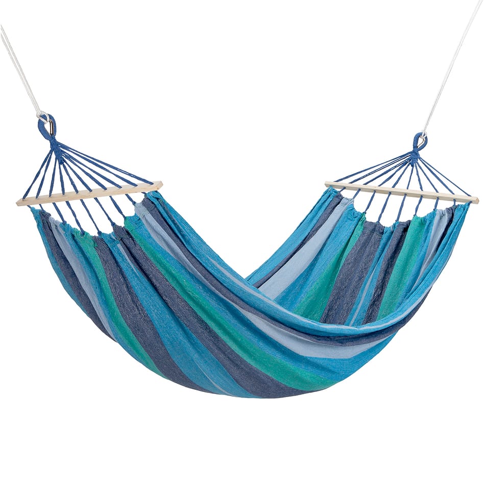NC9004 NIEBIESKI-CIEMNONIEBIESKI HAMAK Z DREWNIANĄ BELKA 70CM I METALOWYM UCHWYTEM NILS CAMP