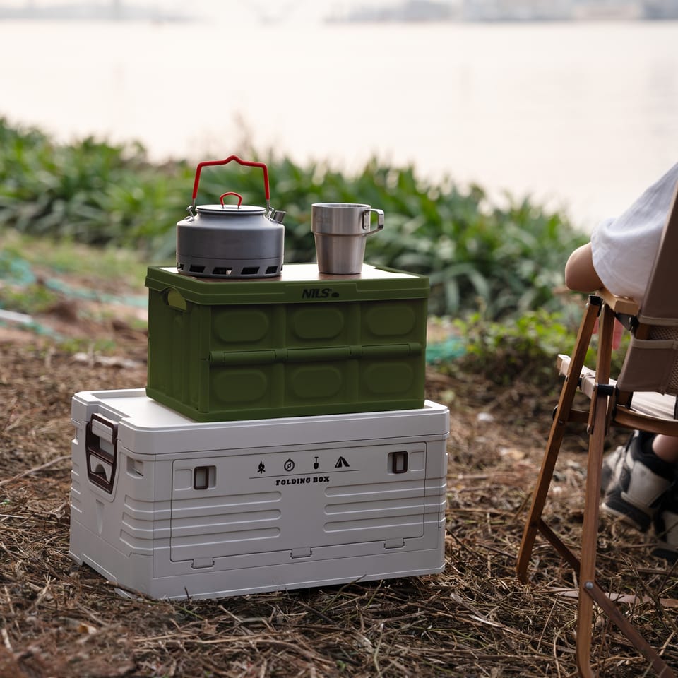 NCB4007 SKŁADANA SKRZYNIA KEMPINGOWA ZIELONA Z FUNKCJĄ STOŁU 2W NILS CAMP