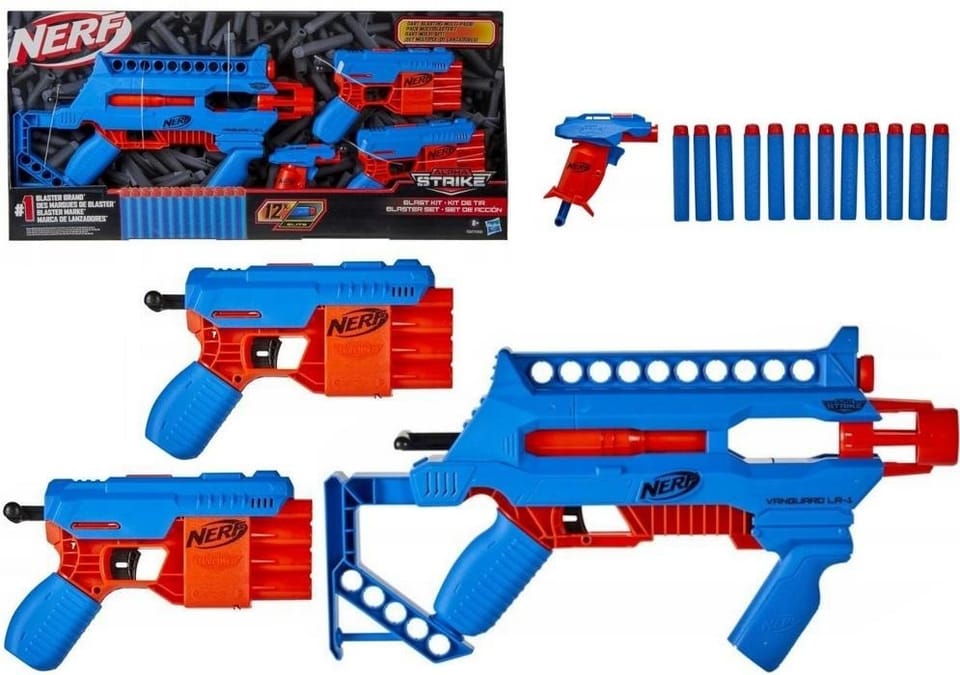 Przygotuj się na prawdziwą bitwę z zestawem Nerf Alpha Strike Blast Kit, który dostarcza wszystko, czego potrzebujesz do rozpoczęcia emocjonującej rozgrywki od razu po otwarciu pudełka. W zestawie znajdują się aż trzy różne wyrzutnie, dzięki czemu możesz prowadzić dynamiczne pojedynki, ćwiczyć celność lub stworzyć własne scenariusze zabawy z przyjaciółmi.