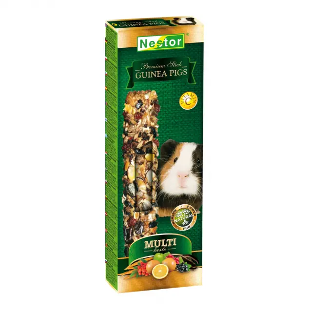 Wielosmakowe kolby „Premium Sticks” wyprodukowano w tradycyjny sposób, wypiekając w chlebowym piecu, wyłącznie z naturalnych składników. Kolby nie zawierają nie tylko żadnych konserwantów, ale i barwników. Przyczyniają się do ścierania siekaczy i gwarantują zabawę w wyszukiwanie ulubionych ziarenek. Receptura kolb została opracowana z myślą o świnkach morskich tak, by zapewnić tym uroczym gryzoniom wyjątkowo smaczne pożywienie, które jednocześnie dostarcza wszystkich niezbędnych składników, wspomagających zdrowie i prawidłowe funkcjonowanie organizmów.