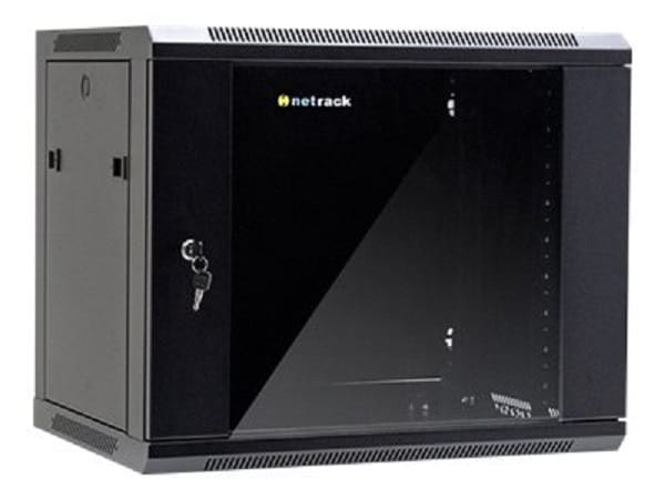 NETRACK 019-090-645-022 Netrack szafa wisząca 19, 9U/600x450mm – czarny, drzwi szklane, otwierane boki
