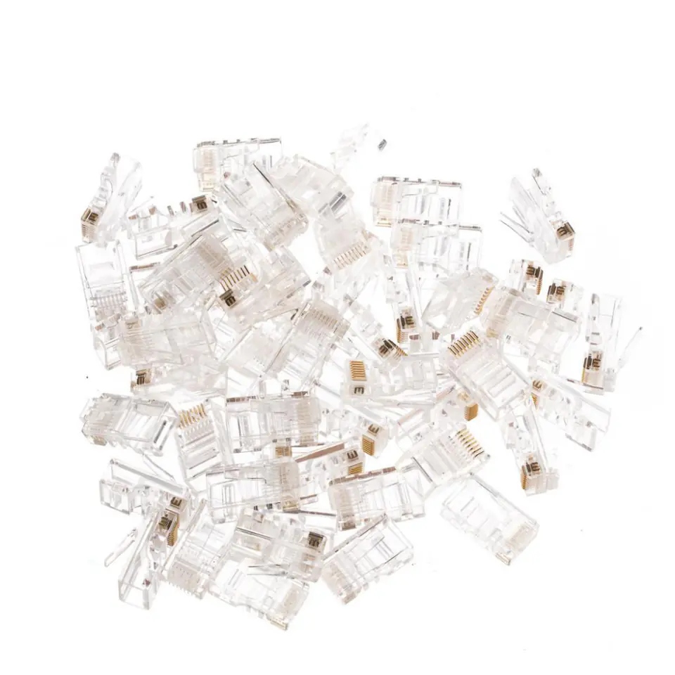 Wtyk typu 8P8C (8 pól i 8 styków). Styki wykonane z fosforobrązu pokrytego złotem. W zestawie znajduje się 100 sztuk.