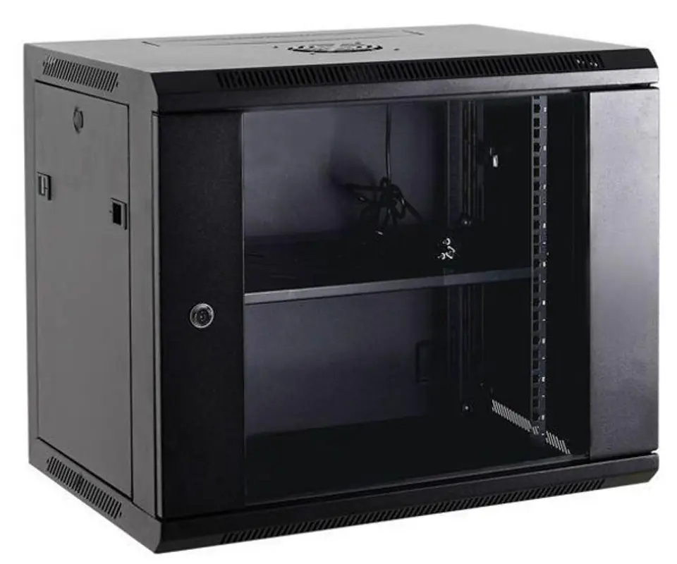 Netrack szafa wisząca 19'', 18U/600x600mm –czarny, drzwi szklane, otwierane boki