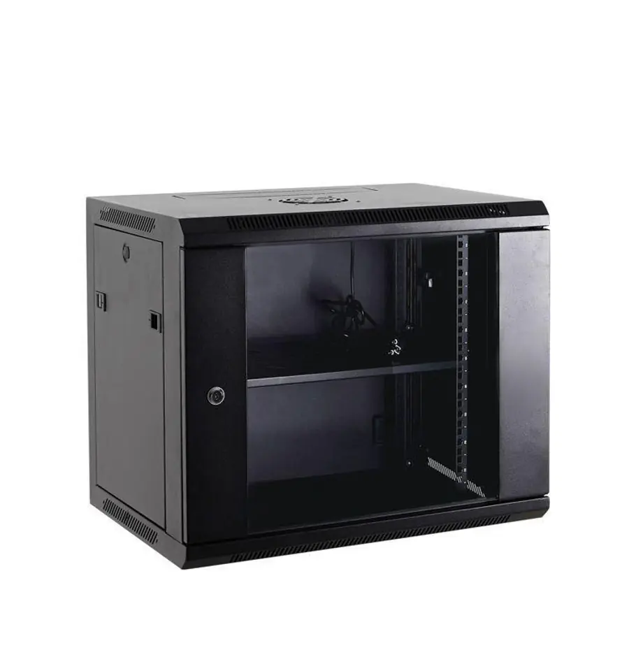 Netrack szafa wisząca 19'',12U/600x600mm – czarny, drzwi szklane, otwierane boki