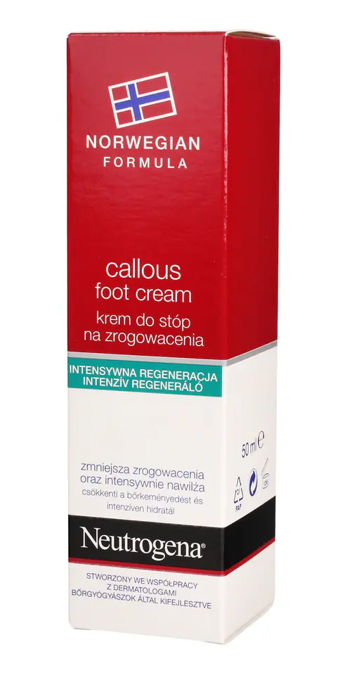 Krem intensywnie nawilża górną warstwę naskórka, zmniejsza zrogowacenia i pomaga zapobiegać ich ponownemu powstawaniu. Unikalna formuła działa na dwa sposoby: dzięki wysokiej zawartości mocznika, składnika znanego dermatologom i pedicurzystom z właściwości złuszczających, pomaga zmniejszyć zgrubiały naskórek. Skóra jest dzięki temu lepiej przygotowana do skutecznego nawilżania. Natomiast Formuła Norweska przez 24 godziny intensywnie nawilża, przywracając miękkość i przynosząc ulgę wysuszonej skórze, pomaga także zapobiegać ponownemu powstawaniu zrogowaceń. Odżywczy krem łatwo się wchłania, nie pozostawiając uczucia tłustości ani lepkości.