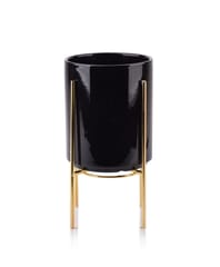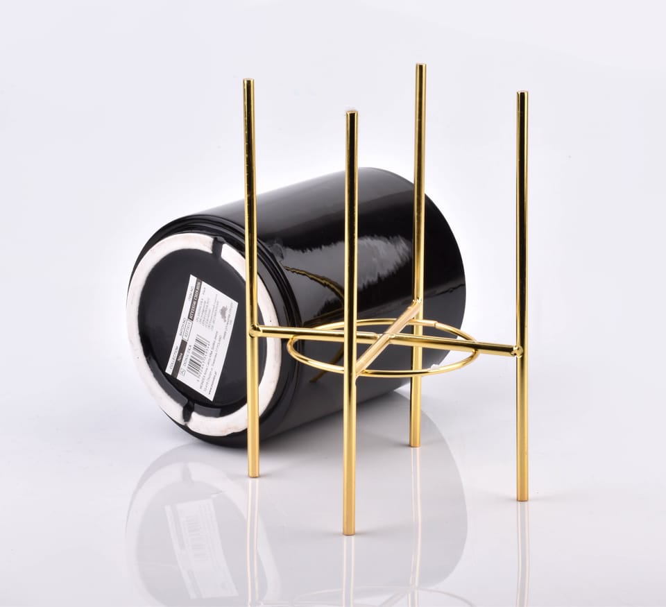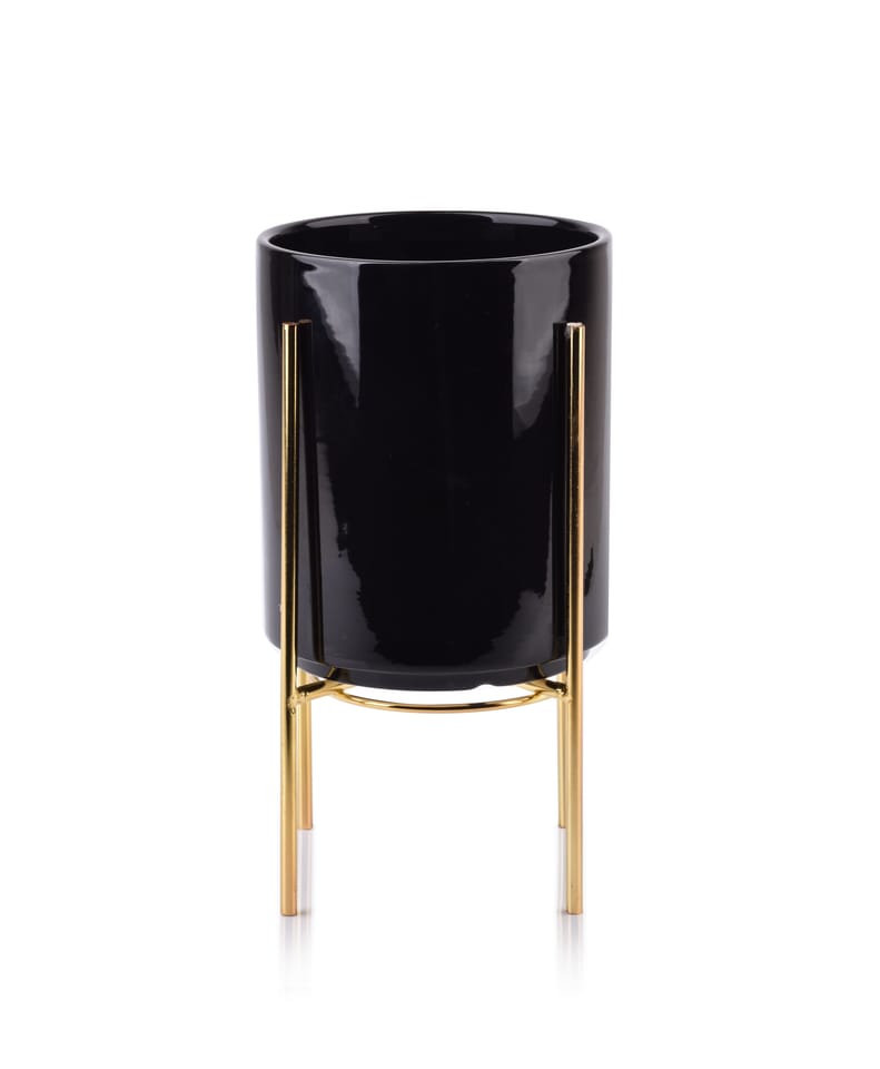 Ceramiczna osłonka na stojaku z serii NEVA marki MONDEX. Osłonka w stylu bardzo eleganckim, ale równocześnie posiadająca prostą formę pasującą do wielu stylizacji. Stojak dodaje efektu glamour. Doniczka wygodnie wkłada się i wyjmuje ze stojaka. Wymiar samej doniczki: 12,8xH:15,5cm Wymiar doniczki w stojaku: 14x H:23,7cm